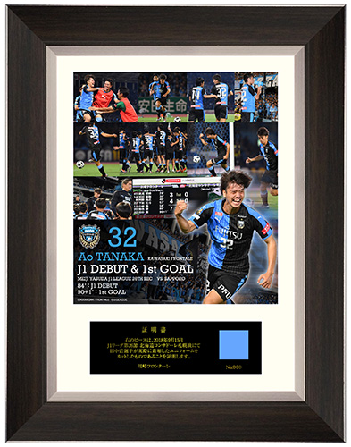 「人生の半分」以上がフロンターレ在籍の田中碧選手。そこで!!「半分青い」2018シーズン1stユニフォームの一部をチップにし、挟み込み加工をしたメモリアルフォトフレームを商品化。
