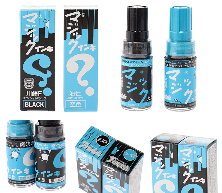 紙はもちろん、ガラス・プラスチック・布・皮・木材・金属・陶器など、どんなものにもよく書け、速乾性・耐水性に優れている魔法の筆記具「マジックインキ」として発売以来65年、現在も当時とほぼ変わらない形状で販売され皆に愛され続けている超ロングセラー商品です。