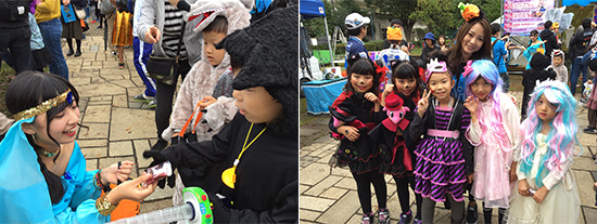 美大生がそれぞれに補助につくのでどなたでも簡単にフェイスペイントが出来ます。