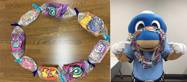 好きなロッテのお菓子を袋に詰めて、最後にこのブース限定の缶バッチを飾り付ければ、あっという間に世界に1つだけのキャンディレイの完成です!!