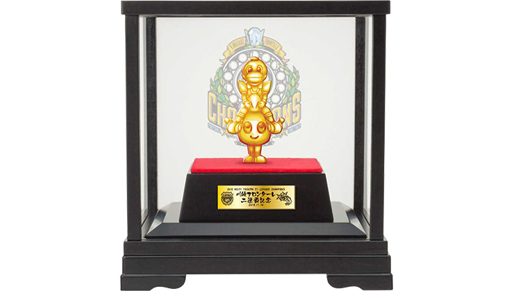 | 仕様 | 純金製「22g」 造幣局認定マーク入り 真鍮+金メッキプレート付き ガラスケース背面「優勝記念ロゴ」プリント 中空仕様 |