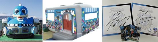 遊んでくれた方全員を対象に、選手のサイン色紙等が当たる抽選会を実施いたします。是非この機会にふろん太ふわふわで遊んでください。