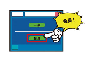5.「一般」 か 「会員」 かを選ぶ画面では、必ず 「会員」 をタッチし引換券番号(券面記載)を入力。