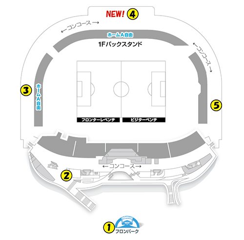 ①等々力陸上競技場外フロンパーク内※フロンパーク開園時より