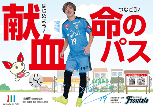 この度、川崎市健康福祉局が製作する川崎市内の「献血」推進ポスターに、当クラブの齋藤学選手が採用されましたので、お知らせいたします。