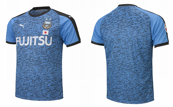 肩から袖にかけて施されたプーマの伝統的な「アパレルフォームストリップ」とクラシックなデザインのクルーネックが特徴的なLIGA Collection(リーガ コレクション)のデザインを採用。べースカラーにはフロンターレブルーを採用し、前身と後身にはヘザー(杢)調のグラフィックが施され、サポーターのエナジーを表現しています。
