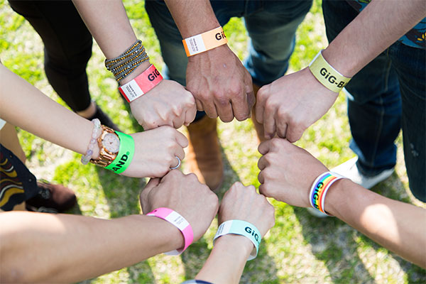 出入りの度にチケットを出すのが面倒なので、ファン感LIVEシートでは通行証代わりにカラーバンドでの通行チェックをします。チケット1枚につきカラーバンド1つをお渡しします。