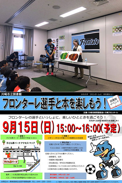 | 主催 | 教育委員会事務局生涯学習推進課、川崎市立図書館、(株)川崎フロンターレ |