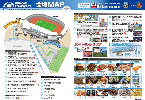 | 場所 | 場外イベント広場「フロンパーク」、場内「メインスタンド2階イベントスペース」、 場外「メインスタンド1階北側スペース(7番ゲート横)」、場内「バックスタンド10番ゲート付近エンタの広場」 |