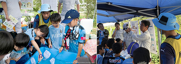 ※選手たちと一緒に行う清掃はどなたでも参加できますが、体験学習(①「ごみ分別体験学習」、②「多摩川水生生物観察」、③「ペットボトルいかだ作り」)は、事前の応募が必要です。
