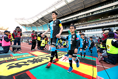 川崎フロンターレの公式戦(ホームゲーム)の際、両チーム選手と手をつないで入場(最大22名)、フラッグを持ちピッチに入場(最大14名)します。