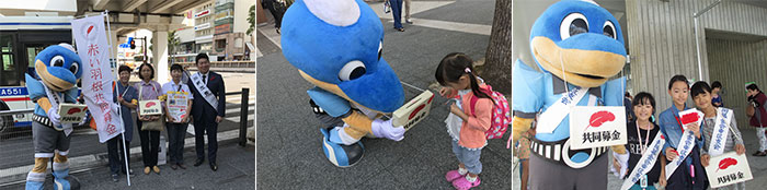 駅前や区民祭でふろん太が募金活動をお手伝いします!
