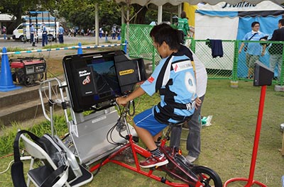 自転車走行を疑似体験できる「自転車シミュレーター」を使って、道路状況に応じた自転車の安全な利用方法を身につけましょう!