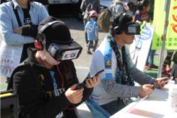 最新技術VRを駆使したブースが登場! VRゴーグルを着用し、映像を見ながらスマホを片手に運転する。新たな問題「ながらスマホ」の危険性を体験してみましょう!