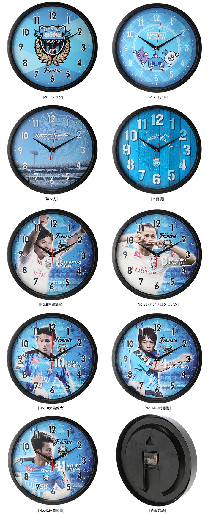 | 種類 | ベーシック/マスコット/等々力/木目調/No.8阿部浩之/No.9レアンドロ ダミアン/No.10大島僚太/No.11小林悠/No.14中村憲剛/No.41家長昭博 |
