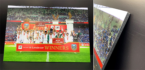 平面性の維持に優れ、長期間の展示でも"そり"や"曲り”が少ない「ゲーターフォーム」という材質を使用しています。高平面性、耐衝撃性、耐久性、耐擦過性にすべてを兼ね備えたまさに記録として保管しておくのにおすすめの商品です。