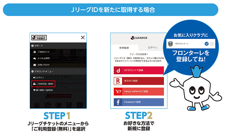 JリーグIDの取得方法をする必要があります。(すでにJリーグIDを持っている方は不要です)