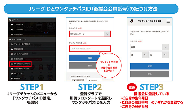 STEP3:JリーグIDとワンタッチパスID(2020シーズン後援会会員番号)の紐づけ設定をする