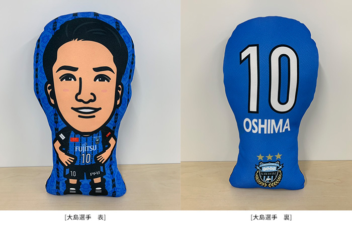 谷口選手、大島選手、小林選手、中村選手、ふろん太&カブレラがデザインされたクッション。