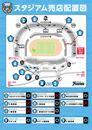 | ◇入場について (「入場ゲート」「入場待ち」「7番ゲート入場待ち列順番決め抽選(列抽選)※事前申込制」) スタジアム内で撮影された全映像(静止画を含む)は、報道等を目的とした各種番組や各種の物販・販促等に使用される場合があります。 ※全ゲートにて、手荷物検査を実施いたしますので、お早めにご来場ください。 ※メインスタンドコンコースの通行については、キックオフ30分前から試合終了まで(ハーフタイムを除く)チケットチェックを行い、メインスタンドのチケットをお持ちの方のみご通行可能とします。 |