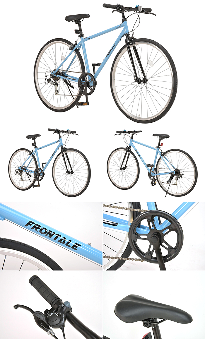 シンプルなフォルムに加えフロンターレブルーをメインにワンポイントとして『FRONTALE』の文字をデザイン。男女問わず街乗りできるスタイリッシュなクロスバイク。