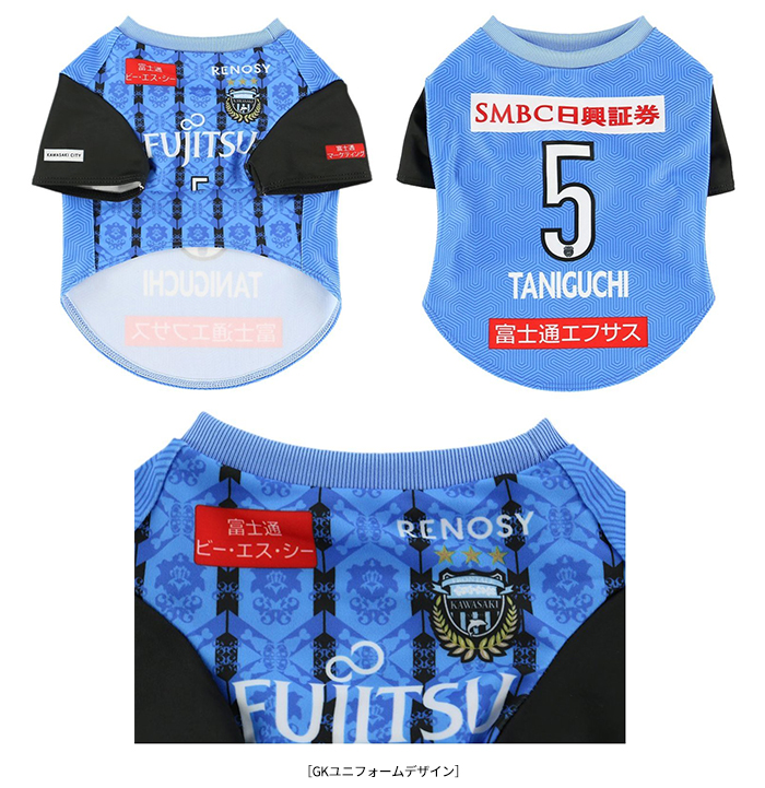 愛犬にお気に入り選手のネーム・ナンバーが入ったウェアを着せこみ、フロンターレファミリーの一員に!