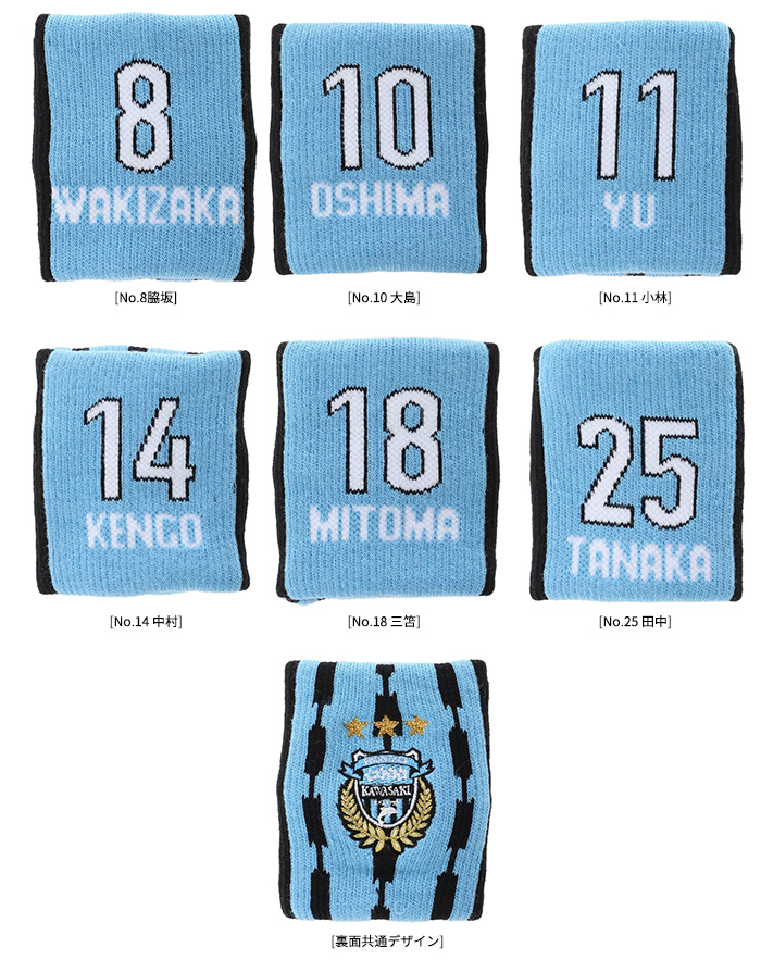 ユニフォーム柄を基調としたデザインのリストバンドは手首につけたり、首からかけたタオルマフラーを止めたりと使い方は自由自在!