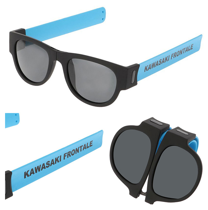 夏の紫外線対策として必須のサングラス。フロンターレブルーとブラックの2色を使用したシンプルなデザインに加え、耳にかける部分が‟くるっと”丸まってコンパクトに収納可能。