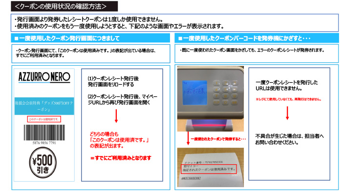 アズーロ・ネロで利用できるグッズクーポン(アズーロ・ネロ店頭にて1000円以上お買い上げで500円値引)