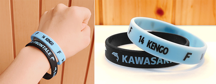 サックスとブラック2本がセットになったラバーブレスレット。サックスver.には選手名がデザインされています。※ブラックは共通柄となります。