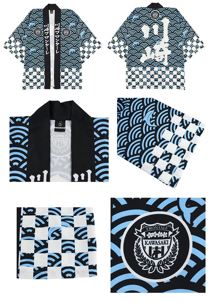 12頭のイルカをデザインし、ピッチに立つ選手とサポーターを表現。迷彩柄に見えながらもハードな印象ではなく、日常にも使いやすいソフトなイメージに仕上がりました。