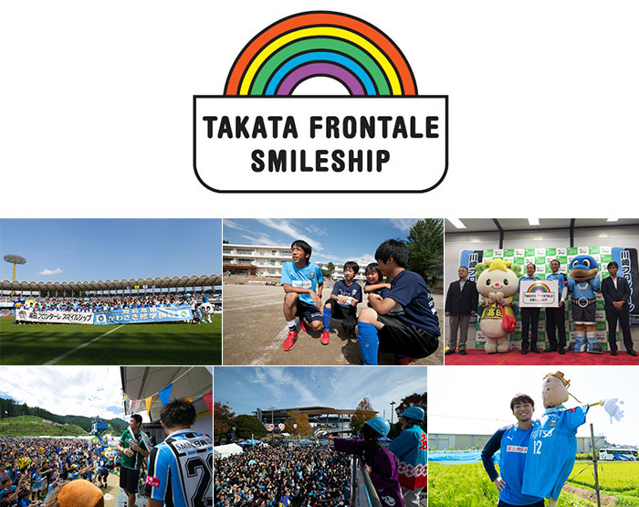 2011年の東日本大震災復興支援活動をきっかけに岩手県陸前高田市との交流(算数ドリル寄付等)が始まり、選手達によるサッカー教室、現地の方々がフロンターレの試合を観戦する「かわさき修学旅行」などを実施。さらに互いの関係性を「支援から交流へ」に発展させるため、2015年に陸前高田市とクラブによる友好協定「高田フロンターレスマイルシップ」を締結。翌2016年には「高田スマイルフェス2016」、2018年は「高田フロンターレスマイルツアー」と銘打った優勝報告会と、交流のきっかけを作った「川崎フロンターレ算数ドリル実践学習」を実施。昨年からは陸前高田市にクラブのマスコット「ふろん太」の名前に合わせた田んぼ「ふろん田」が誕生し、日本酒造りを行うなど、毎年様々な切り口で交流を行っています。