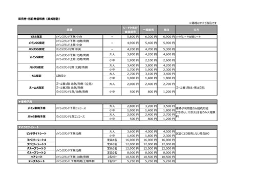 | 価格 | 一般前売価格 ※試合当日は当日券価格となります。 |