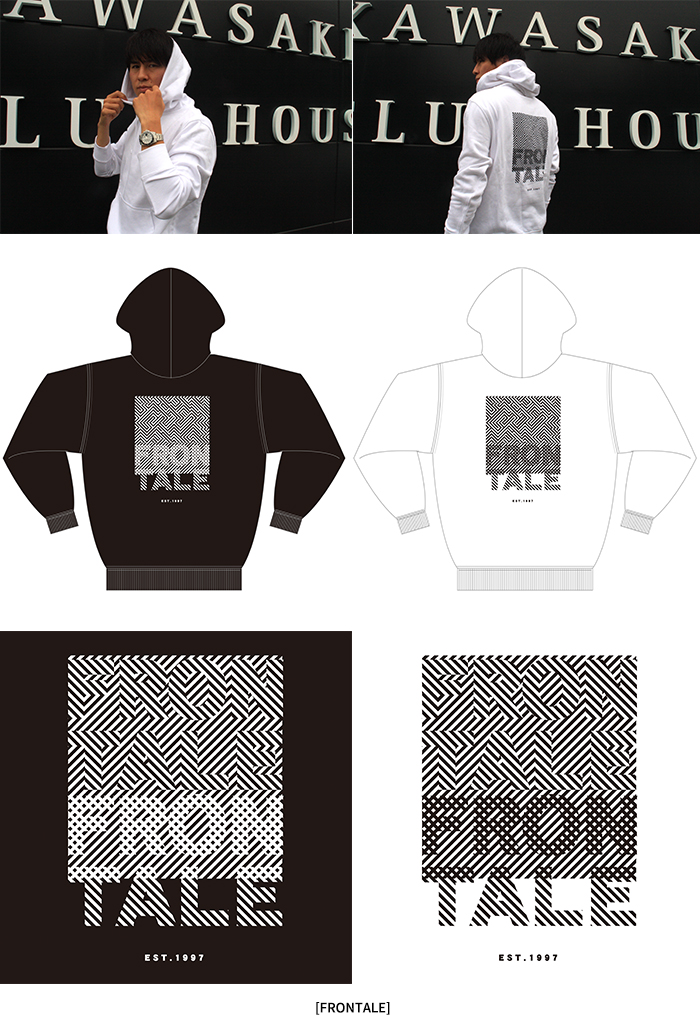 ちょっとお茶目なデザインが光るフロンターレブルーのプリントを使用した‟カタカナ”デザインと、よ~く見るとFRONTALEの文字が2つ隠れている‟FRONTALE”デザイン。どなたでも合わせやすいブラックとホワイトボディを採用。最後に…。ヤストがカッコよすぎてモデルみたい…。