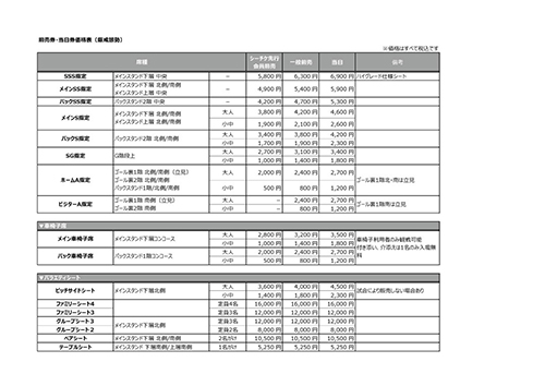 | 価格 | 一般前売価格 ※試合当日は当日券価格となります。 |