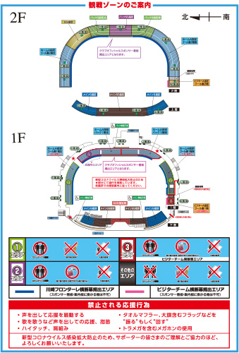 ※ビジターA指定以外のエリアは、フロンターレを応援してくださる方のみとなりますので、ビジターチームのユニフォーム・グッズや、その他対戦相手を連想させるものを着用しての入場・観戦はできませんので、ご注意ください。(メイン車椅子席は除く)