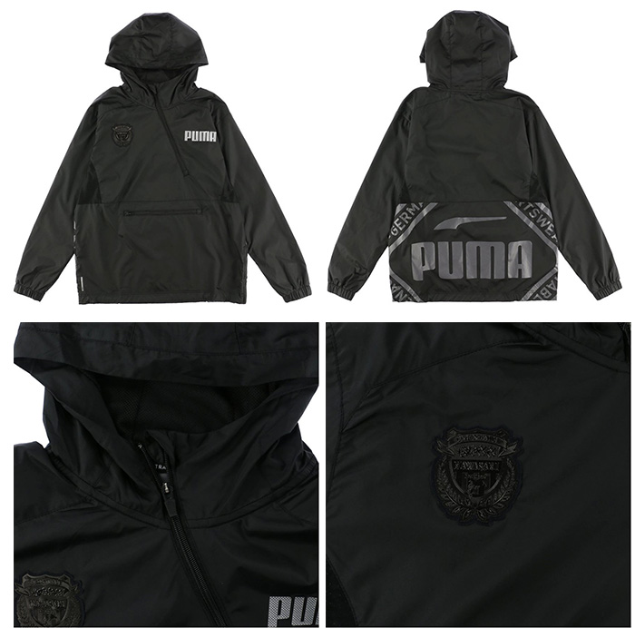 防風機能付きジャケット。アシンメトリーなハーフジップが特徴的で前面にはジップポケット、サイドには通気性を高めるベンチレーションジッパーを配置。