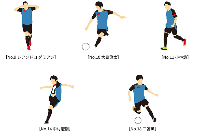 | 種類 | No.9 レアンドロ ダミアン/No.10 大島僚太/No.11小林悠/No.14 中村憲剛/No.18 三笘薫 |