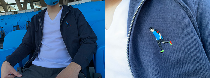 各選手のプレー中やゴール後のパフォーマンス姿など特徴的なシーンを刺繍で再現!ワンポイントで選手の魅力をアピールできる商品です。