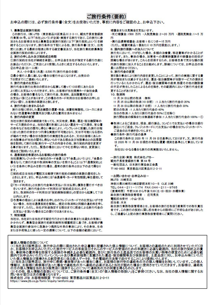 ※バス乗車時に検温を行います。37.5℃以上の熱があった場合、参加できません。取消料が発生します。