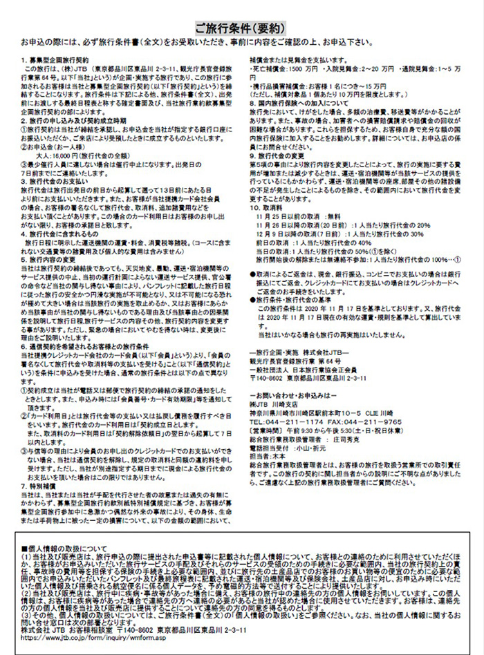 ◇武蔵小杉宿泊コース・川崎宿泊コース共通 「2020年11月30日(月)23:59」