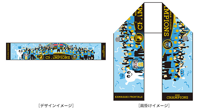 川崎フロンターレには欠かせない応援アイテム『タオルマフラー』。優勝を記念してシンプルなデザインのタオルマフラーを展開。