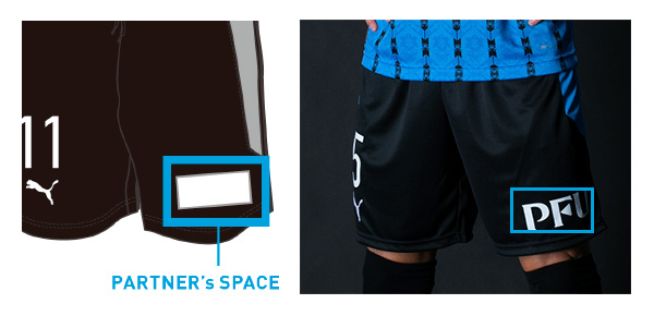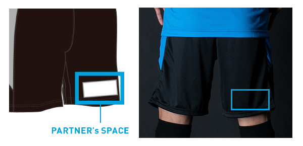 | パンツ表側 | 選手が公式戦全試合(ACLを除く)で着用するユニフォームのパンツ表側部分にパートナー企業様の社名ロゴや製品名を表示します。