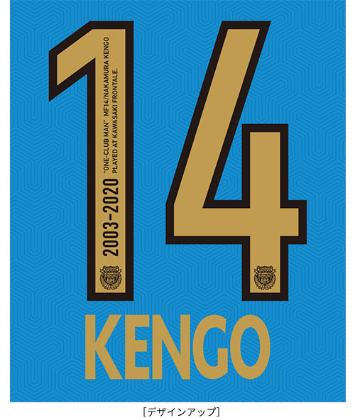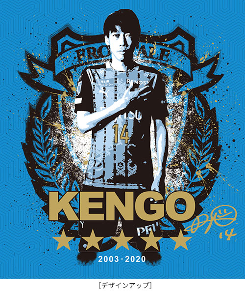 2003年~2020年まで在籍していたフロンターレのエンブレムに手を添えるケンゴをメインビジュアルにサポーターの皆様と共に獲得してきたタイトル(星)をデザイン。ゴールド部分はキラッと輝くラメを使用。