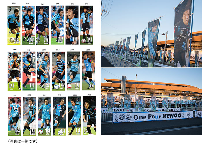 2020年11月からのホームゲーム時に等々力陸上競技場内外に掲出されていた、「One four KENGOのぼり旗」を限定販売。
