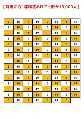 ◆政府・Jリーグの方針に従った川崎フロンターレの座席配席について周囲との間隔を「1席程度」間隔をあけたうえで、席数の上限は「【5,000人又は収容定員の50%のいずれか大きい方】又は【10,000人】のいずれか小さい方」での運用となり、等々力陸上競技場の場合は「上限10,000人」での運用となります。 緊急事態宣言がさらに延長され、本試合日も延長期間に含まれる場合は政府が定めるイベントの開催制限に従って「上限5,000人※ビジター席なし」での運用に変更となります。その際はお知らせいたします。 |