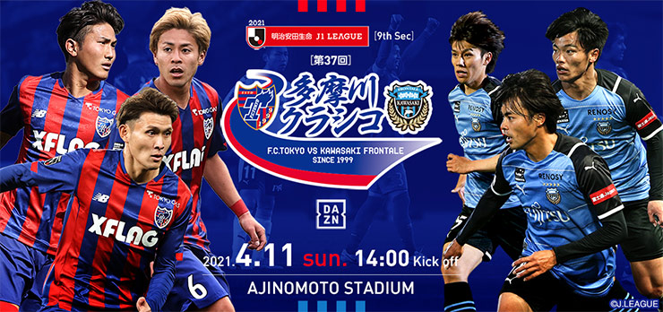 4月11日(日)に開催される2021明治安田生命J1リーグ 第9節 FC東京vs川崎フロンターレは、「第37回多摩川クラシコ」です。