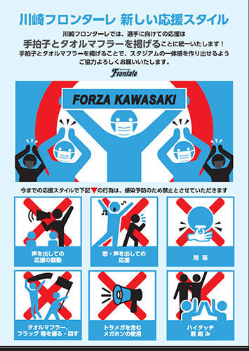 ◇入場について ○来場されるファン・サポーターの皆様へのお願いと川崎フロンターレの取り組みについて ※通常開催とは異なる運用となりますので、ご注意ください。 スタジアム内で撮影された全映像(静止画を含む)は、報道等を目的とした各種番組や各種の物販・販促等に使用される場合があります。 |