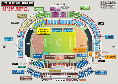 ※ホームA指定のゴール裏1階北・南(立見)エリアの開放はございません。