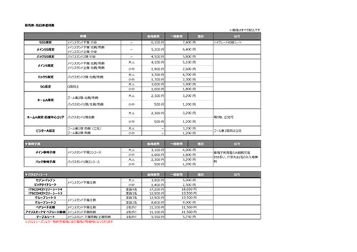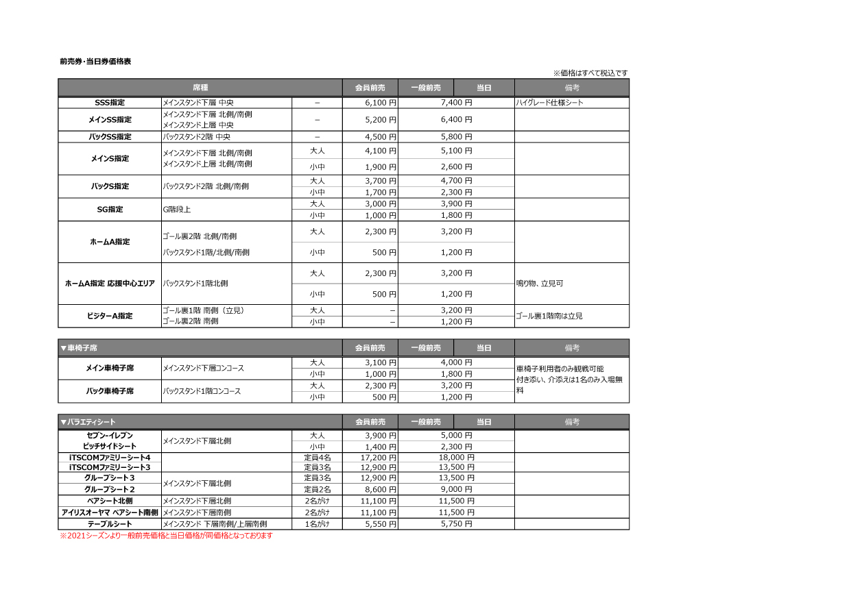 | 価格 | 一般前売・当日価格 ※今シーズンよりチケット価格を改定しております。 |